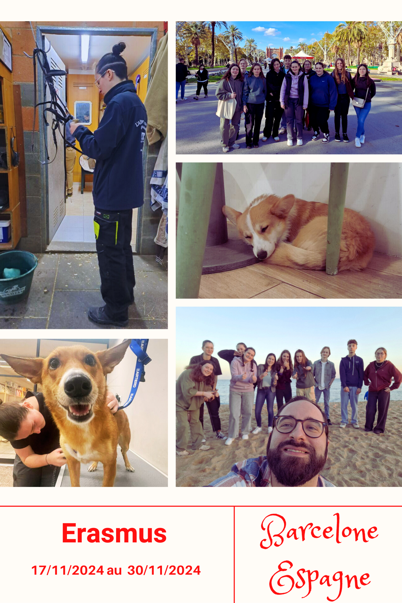 Arrivé sur l'heure du midi à Barcelone le 17 novembre, nous avons rejoints notre contact d'EspaceMob pour aller jusqu'à notre logement et nous expliquer les différents stages. Nous avons logé au nord de Barcelone, dans un appartement de 10. Le lendemain, les jeunes ont pu découvrir l'ensemble des lieux de stage et pour certains commencer. 3 jeunes étaient au Club de Polo de Barcelone, 6 en animalerie/toilettage et une en refuge félin. Pendant les deux semaines, les jeunes ont pu aller en stage le matin, et visiter l'après midi (la ville, le Mont Juic, etc.) Les élèves ont pu apprendre à cuisiner, partager de bons moments (plage/billard/café) et faire les courses. Mais la plus grande découverte fût la culture espagnole avec son rythme de vie différent. |